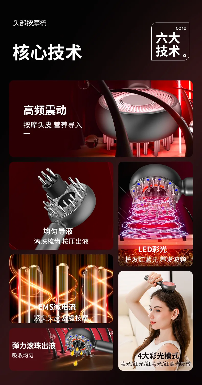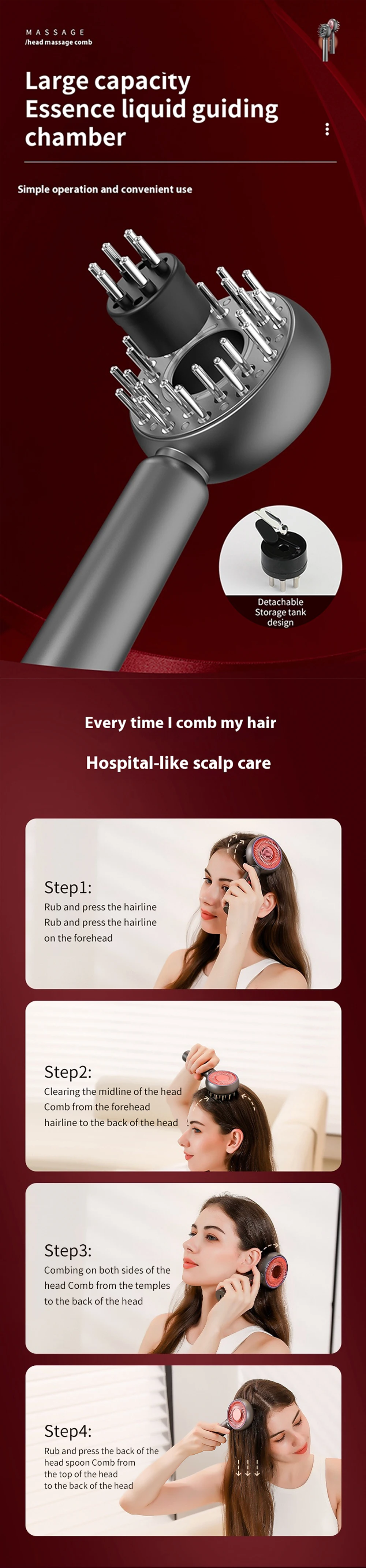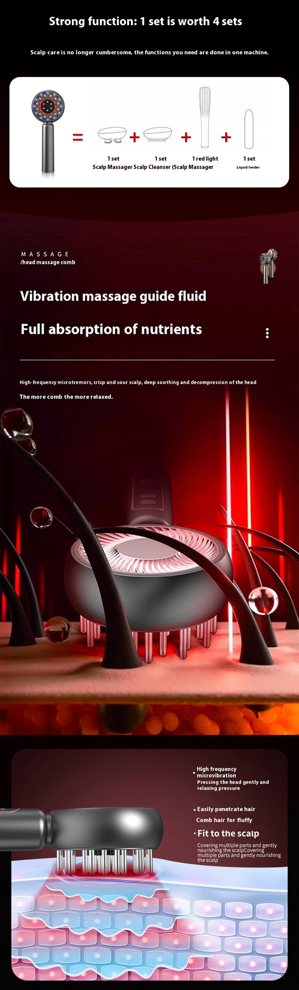 1.The high frequency vibration massage deeply soothes the scalp and promotes blood circulation, allowing the nutrient solution to reach the hair roots and better promote the absorption of nutrients by the scalp.