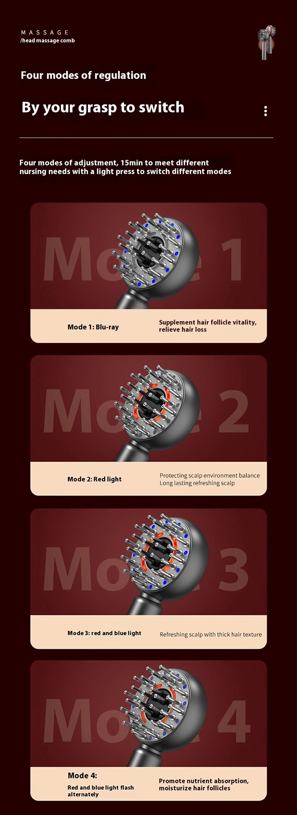 2.The 650nm red light therapy strengthens metabolism, activates cells and promotes hair follicle regeneration; irradiation is anti-inflammatory and anti-bacterial, balancing oil and taking care of scalp health.